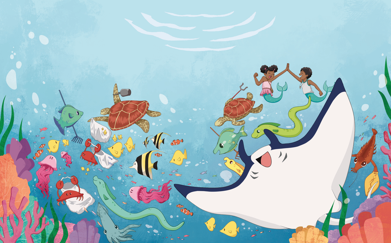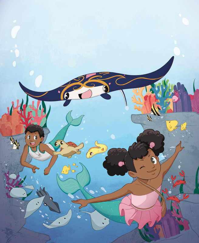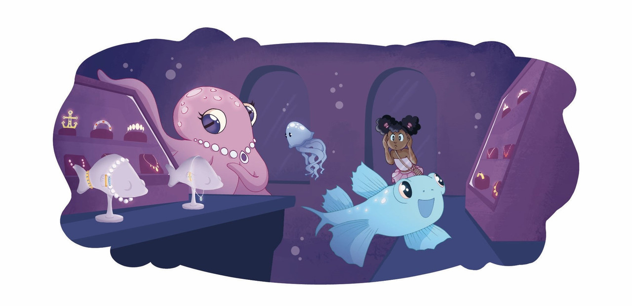 Interior art for "All Fins on Deck" as part of the Moonlit Mountain Readers series. CLIENT: Mossflower Press