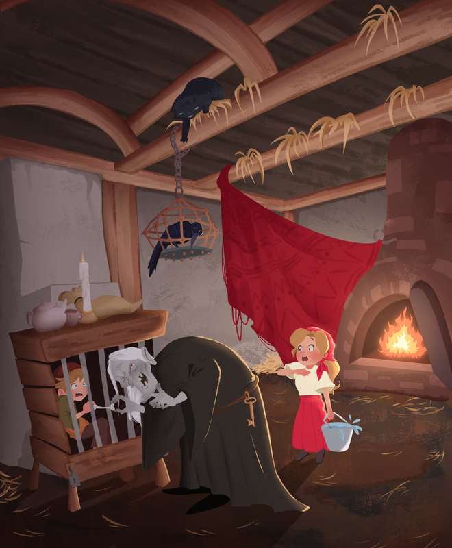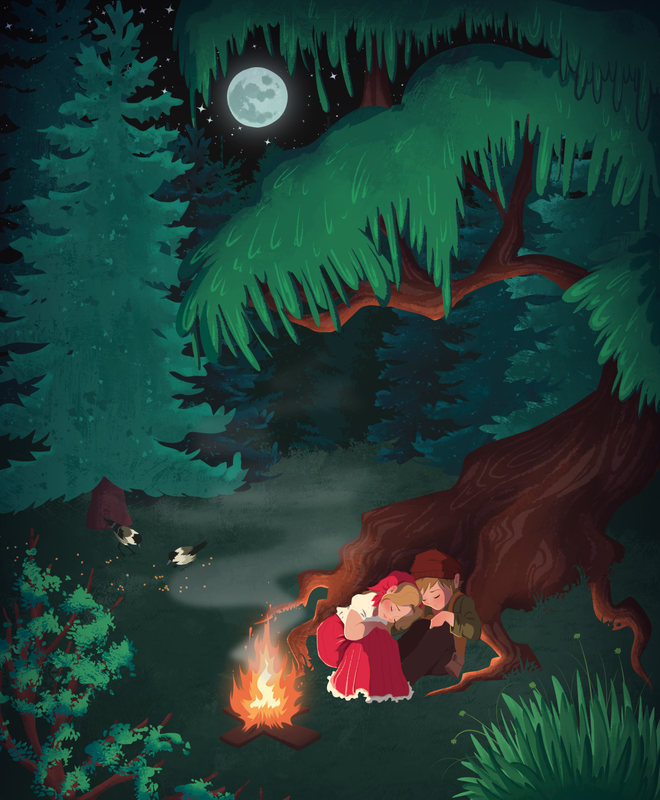 Interior art for "Hansel and Gretel: Fairy Tale Classics", adapted from sketches by Kristina Denadic. CLIENT: The Child's World